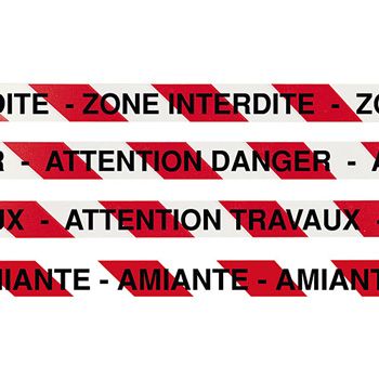- Ruban «ZONE INTERDITE» 75 mm x 500 m - Ruban «ATTENTION DANGER» 75 mm x 500 m - Ruban «ATTENTION TRAVAUX» 75 mm x 500 m - Ruban «AMIANTE» 75 mm x 500 m
