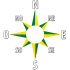 Jeux au sol la rose des vents en résine thermoplastique DecoMark®. Diamètre : 3000 mm. DecoMark® est un marquage décoratif thermocollant préfabriqué. Il s'applique sur toutes les surfaces bitumeuses.