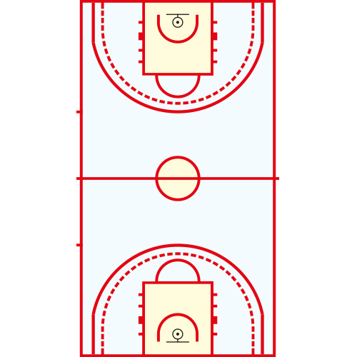 Terrain de basket-ball thermocollant. Jeu au sol en résine thermoplastique DecoMark®.