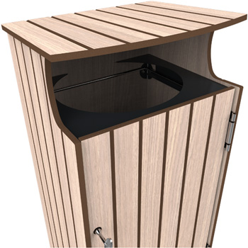 Robuste, elle s'intègre dans tous les environnements extérieurs. Evacuation des liquides prévue avec un fond perforé.