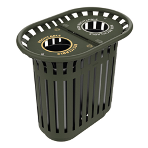 2 flux de 40 litres. Avec 2 seaux intérieurs en acier galvanisé avec anses de préhension. Avec couvercles à serrure et 2 ouvertures calibrées Ø 170 mm. Accepte des sacs poubelles de 50 litres.