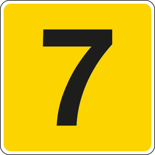 Panneau de signalétique carré pour l'industrie, la logistique... avec chiffre 7 en noir sur fond jaune qui permet d'identifier rapidement un rayonnage, un étage, une allée de stock, un code d'entrepôt...