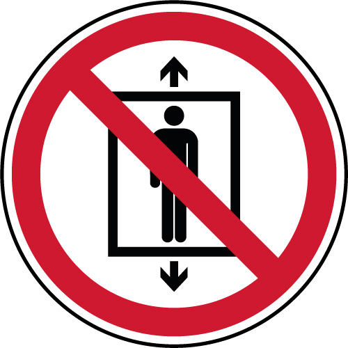 Panneau de signalétique d'interdiction rond fond blanc liseré rouge, pictogramme P027 informant les usagers qu'il est défendu d'utiliser cet ascenseur pour des personnes. Pictogramme à placer près des ascenseurs à marchandises afin de veiller à la sécurité des personnes.