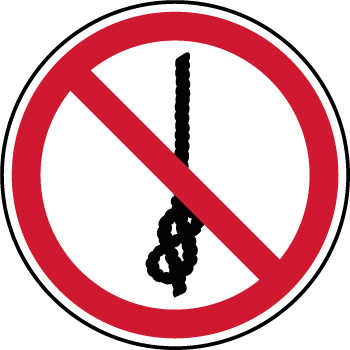 Panneau de signalétique d'interdiction rond fond blanc liseré rouge indiquant qu'il est interdit de faire des noeuds sur une corde.