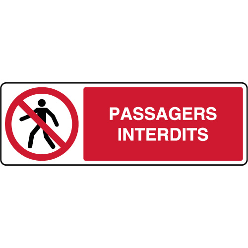 Panneau de signalétique d'interdiction rectangulaire et horizontal fond blanc et rouge permettant d'interdire les passagers.