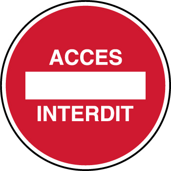 Panneau de signalétique d'interdiction de parking rond rouge et blanc, avec texte permettant de signaler un accès interdit à la circulation.