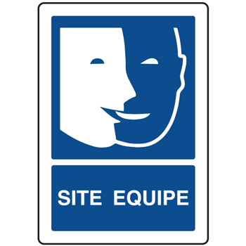 Panneau de signalétique d'information rectangulaire et vertical blanc sur fond bleu qui informe qu'un site est accessible aux personnes souffrant de troubles cognitifs.