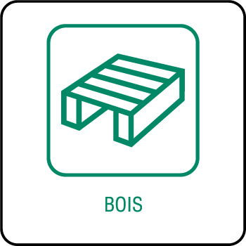 Panneau de signalétique de tri sélectif pour le recyclage en déchetterie, carré blanc et pictogramme vert, permettant d'identifier un conteneur de recyclage pour le bois.