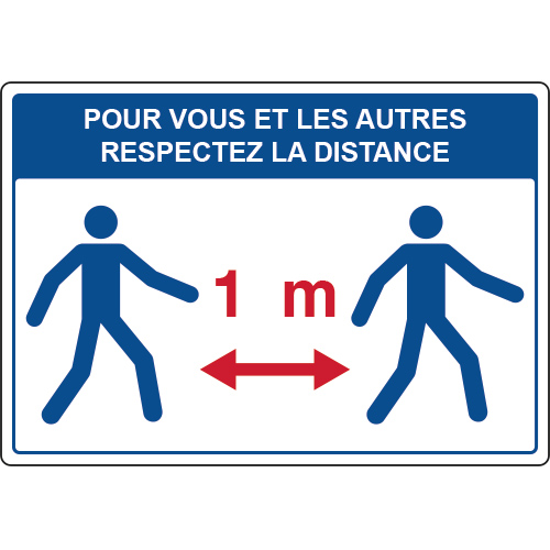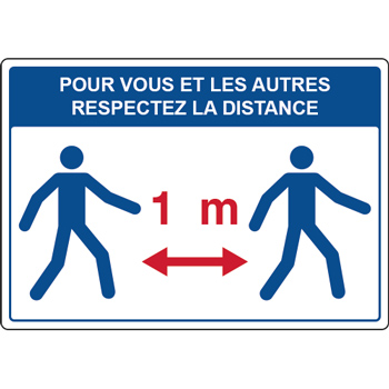 Panneau de signalétique d'information respectez la distance d'un mètre.