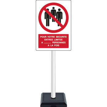 Panneau avec support : pour votre sécurité entrée limitée à X personnes à la fois. A personnaliser au marqueur pour indiquer le nombre de personnes.