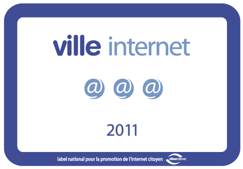 Panneau de signalisation Ville Internet (de 1 à 5 arobases) ainsi que l'année d'obtention du label.