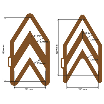 Il permet de tracer en série un sigle Double chevron pour piste cyclable sur les sols.
