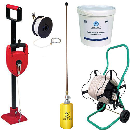 1 enrouleur métallique. 1 corde drisse de 100 mètres. 1 valet de prémarquage avec cordeau. 1 fil de rechange en coton sur tambour. 1 seau de poudre blanche de 6 kg. 1 bidon de prémarquage.