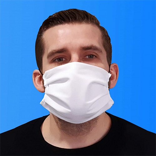Masque de protection en tissu 100% polyester 3 couches, certifié Oeko-Tex pour un contact prolongé avec la peau. Couche intérieure filtrante en viscose polyester. Agréable à toucher. Stérilisé au moyen d'un traitement à l'ozone. Doté d'un élastique pour une application facile et rapide. Lavable en machine à 60°C et réutilisable. Conçu pour 10 lavages minimum. Taille unique. Ce produit n'est pas un dispositif médical. Conditionnement par 10.
