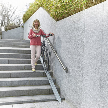 Utilisation possible en extérieur et intérieur (hall de gare...). La rampe évite de devoir porter le vélo pour monter ou descendre les escaliers.