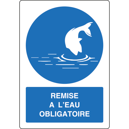 Panneau d'information indiquant que toute pêche doit être remise à l'eau obligatoirement.