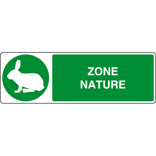 Panneau d'information indiquant une zone nature et la présence possible de lapins.