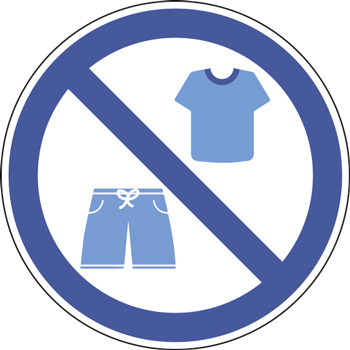 Panneau d'information vêtements (tee shirt et short) interdits.